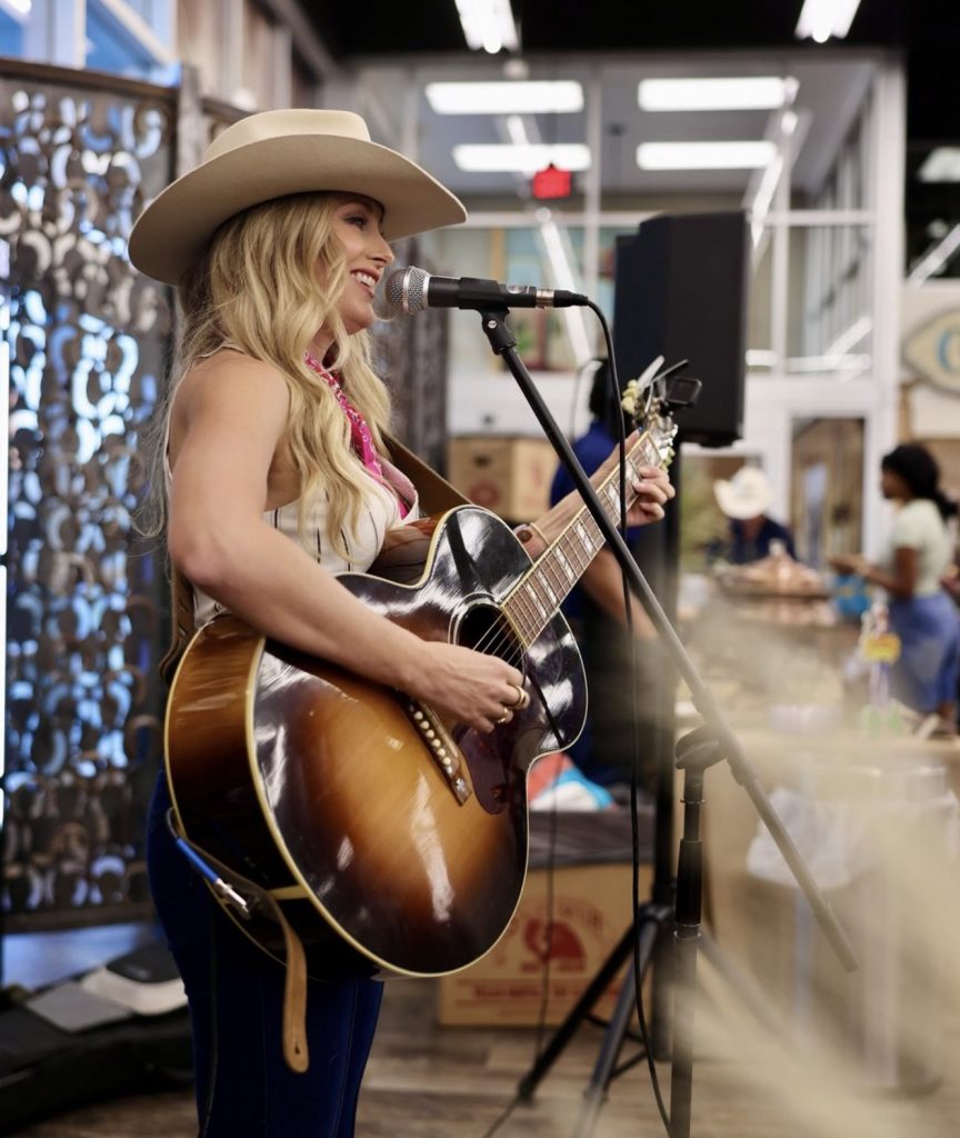 Country singer-songwriter Stephanie Quayle serenading customers at the grand opening celebration.