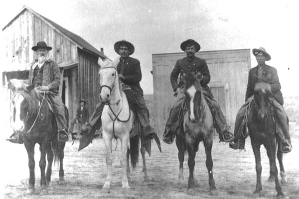 Early vaqueros — (left to right) Jesus Olea, Francisco Macias, Juan Grijalva, Clemente Macias (PHOTOGRAPHY: Courtesy of Julia Macias Brooks).