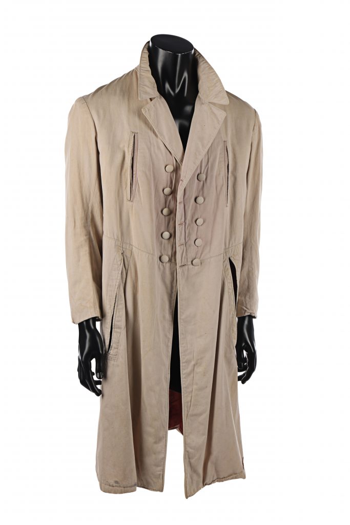 Mr. Morton’s (Gabriele Ferzetti) coat and trousers from Sergio Leone’s epic spaghetti western Once Upon a Time in the West. Morton wore his coat and trousers when he met with Frank (Henry Fonda), who knocked him to the ground and tried to intimidate him. Ferzetti had a long and distinguished career in Italian cinema and further afield, including the Bond film On Her Majesty’s Secret Service, in which he played Marc Ange Draco.