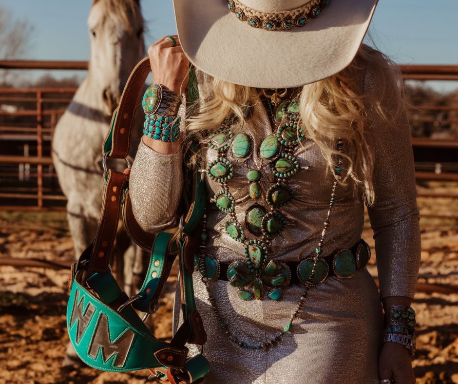 Fort Worth-based, female-owned turquoise jewelry brand Hippie Cowgirl Couture is crossing into the rodeo world with a groundbreaking partnership to be premiered at the 2024 National Finals Rodeo. Hippie Cowgirl Couture is proudly sponsoring Macza Pro Rodeo’s Saddle Bronc #6, naming the bucking horse “Squash Blossom Steely Dan.” This partnership marks the first time a Western jewelry brand has supported an equine athlete at the NFR.