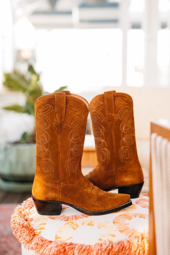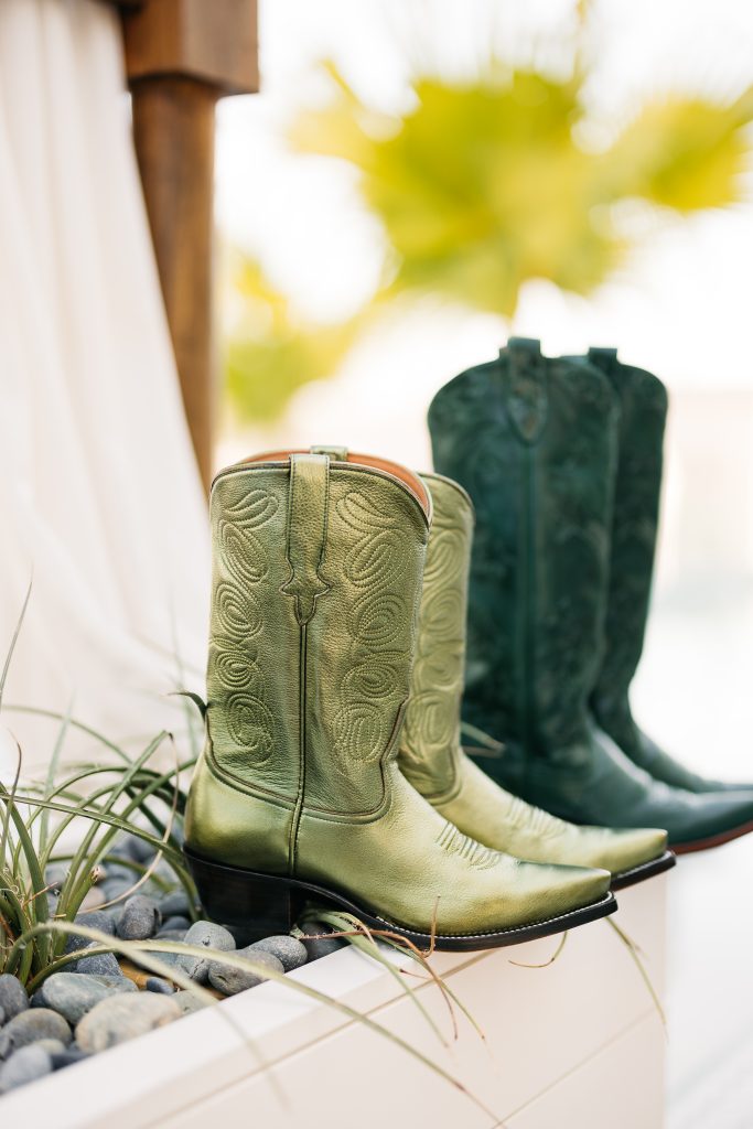 When C&I talked with them in Texas just before the kickoff of 2024 gift-buying season, Sarah was getting in the holiday spirit with Miron Crosby’s Noelle Green boots, and Lizzie was wearing their newly launched Wade Metallic Gold.