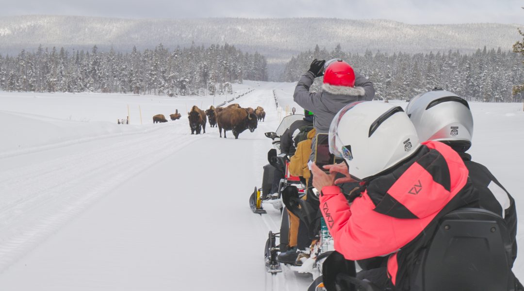 From December 15 to March 15 Gary Gales Outfitting runs snowmobile tours through snowy Yellowstone National Park. They are the only outfitter with eastside park access, guiding snowmobilers through Sylvan Pass and along the Yellowstone River to Yellowstone Canyon and Falls. Zip through the snow under alpine forests while stopping along the way to spot wildlife. Bison are aplenty, but you might also see bald eagles, otters, elk, mule deer, and moose. If you’re lucky, you’ll have a “Triple Dog Day,” a rare occasion that only happens a few times each season where you’ll see wolves, coyote, and foxes all in one day.