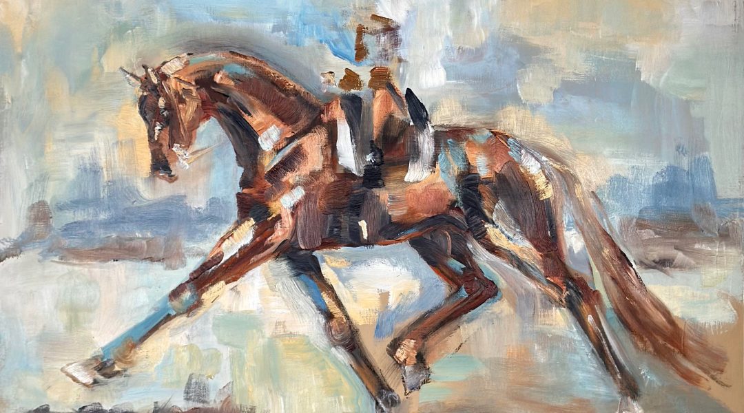 For the 33-year-old painter, that approach all comes together in Expression, which depicts a sport horse in an extended trot. “That movement takes a lot of refined training and an elevation and looseness. That was a study of how other horses and riders do it and how I aspire to do it,” she says.