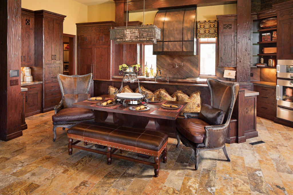With the plan in place, the next step was to create the perfect model home. Builders Scott Bates and Christopher Carnell were in charge of the exterior, while designers Lana Williams and Jennifer Ousley were tapped to outfit the interior. “This was a rare opportunity to create an elegant estate that reflects the magnificence of the surrounding property,” Williams says. Her chosen theme? Western grandeur.
