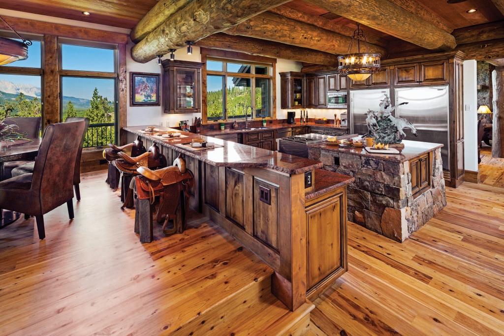 But before they could ski, they had to build, so the Fullers enlisted designer and architect David Seabury to create a retreat as idyllic as the snowy surroundings. From plans to completion, the project took 18 months, resulting in an 11,200-square-foot log-accented house with five bedrooms and five-and-a-half baths.