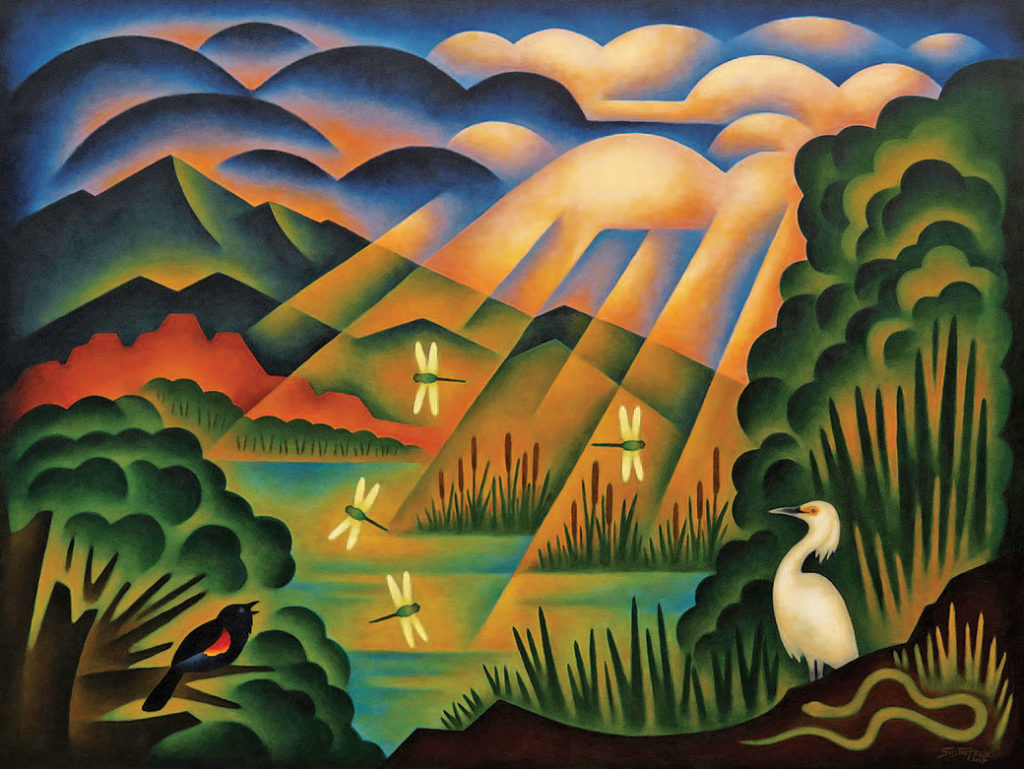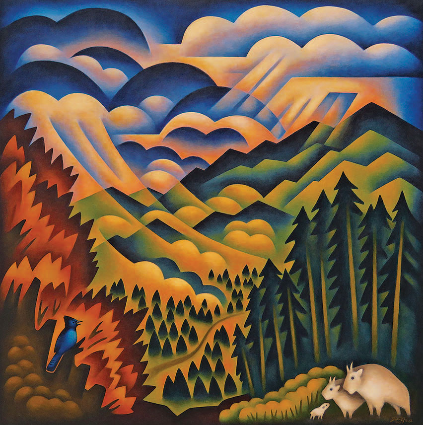 “I feel like we’re another chapter in the book,” Felix says. “In many ways, we’re both a part of modernism’s evolution, depicting a subjective view of the region’s landscape and its people through applied abstraction, using repetition of form, direction, and line.” Both artists’ works can be found in the permanent collections of the Denver Art Museum, Colorado Springs Fine Arts Center, Kirkland Museum of Fine and Decorative Art, and many private collections.