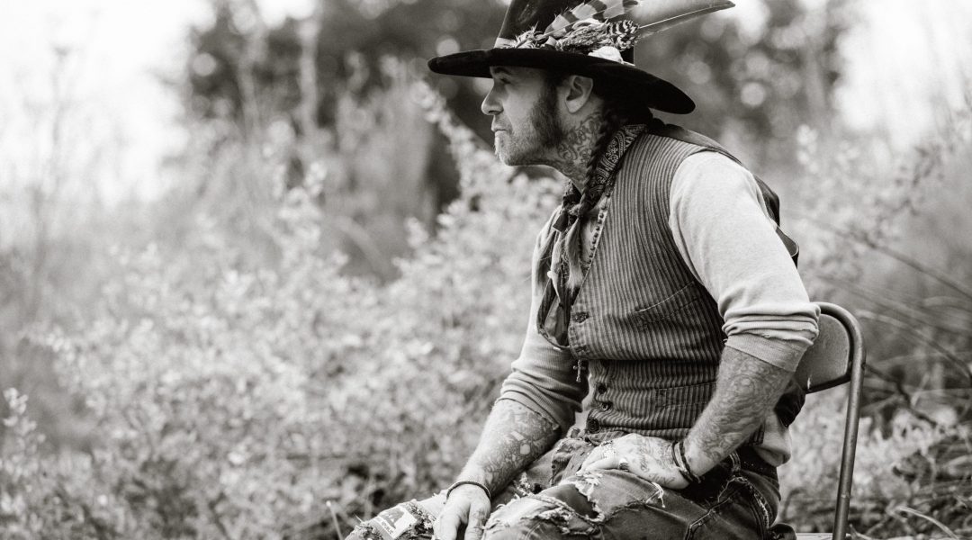 Overbey, who also designs custom cowboy hats with his company, Lone Hawk, is a California rocker with a flair for the Western lifestyle. Witness the panache with which he pulls off wearing his distinctive vintage-inspired hats.