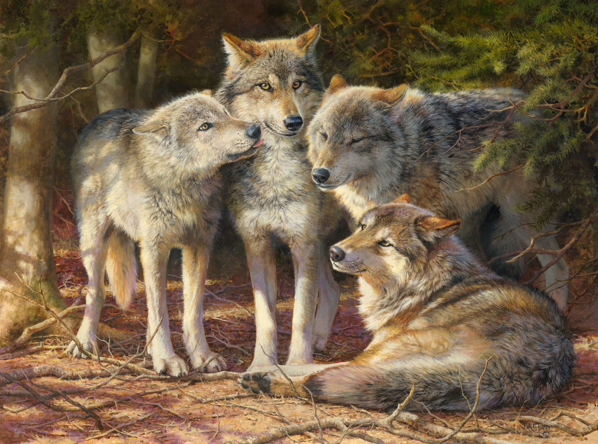 Marris: My creative process changes hourly, and I don’t know whether the time in front of the canvas compels me to head for the wilderness or if seeing the wolves and bears pushes me back into the studio — it’s both, really. Regardless of how many photos I’ve taken for my files, I get the unbearable need to go back out and get more. An idea or whole complete painting will form in my head and I can’t wait to start it.