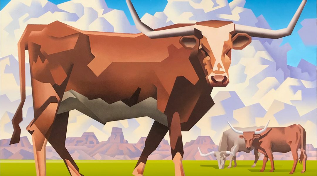 And he hasn’t, apart from sometimes playing guitar in a country band (“classic stuff like Hank Williams, Johnny Cash, Merle Haggard, Willie”), an experience that gives him an apt metaphor for what he’s hoping to convey with his visual art: “Occasionally, when the band is sounding tight and people are dancing and having a good time, for a moment, I imagine that the audience is hearing the same thing I am,” he says. “I want the viewer of my art to feel the same passion as I do about a scene.” His hope is to use his cubist style to express the monumental volumes of the Southwest’s spectacular rock forms. “I want to show viewers these familiar sights in new and fresh ways. I aim to have even my most still and serene landscapes vibrate with primal energy.”