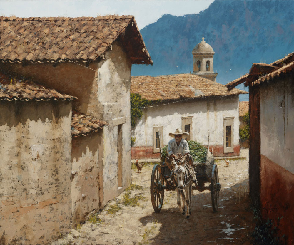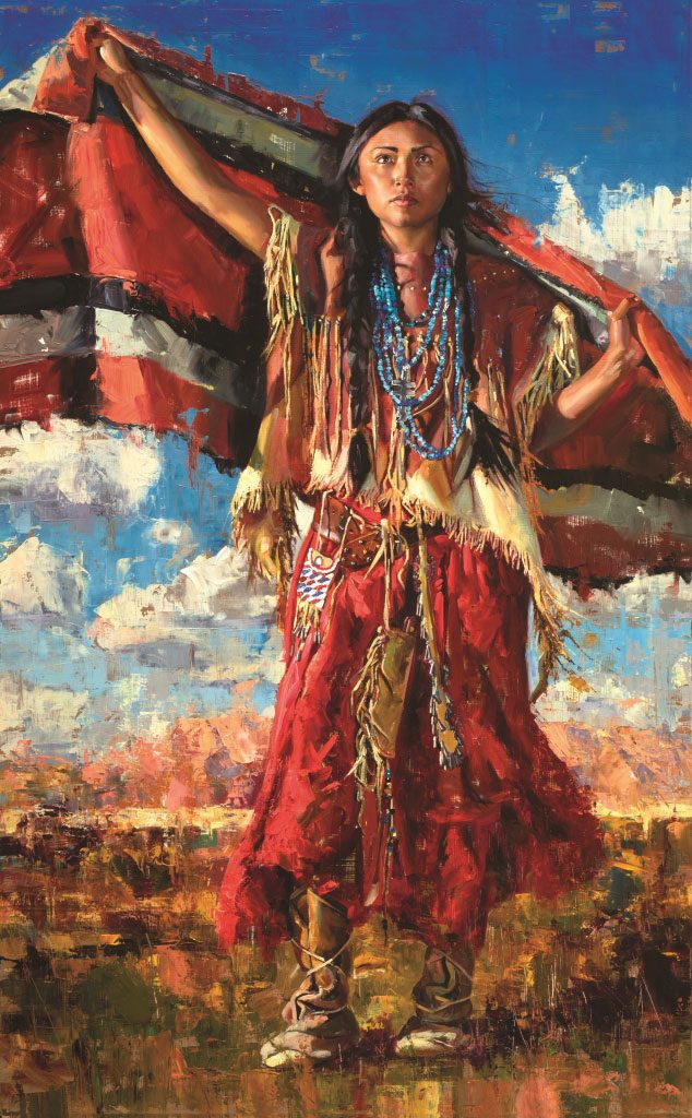 “Jeremy sent Beauty of the Desert, a vertical — 40 by 25 — of a Native American woman with a blanket that she appears to be putting over her head to shield her from the sun,” Duchemin says. “It’s a very striking piece, well done in Winborg’s unique style. He’s a hot ticket since The Russell last year, when one of his paintings sold for $52,650, including buyer’s premium. He’s definitely a rising star.”