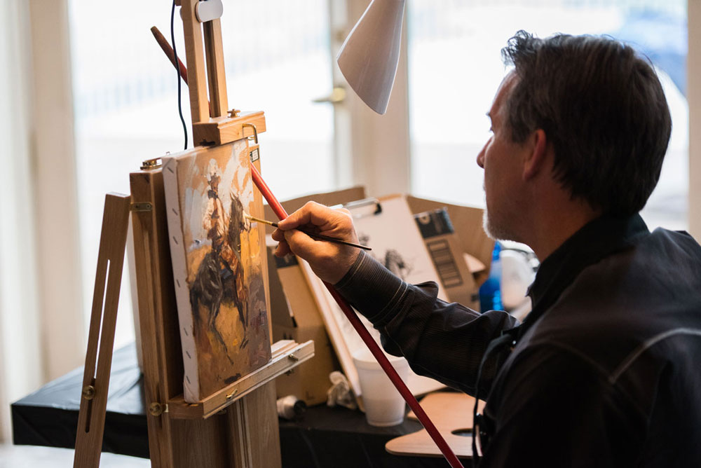 The famed Montana cowboy sculptor hosts an intimate gathering of just 15 high-end artists, whose works cover everything from oil painting and leatherwork to pottery and photography — even a custom handmade wooden canoe. “A little bit of everything,” says Rocky Mountain Elk Foundation Artist of the Year Linda Short, whose scratchboard is featured in the show. “Really, really exquisite work.” jaycontway.com