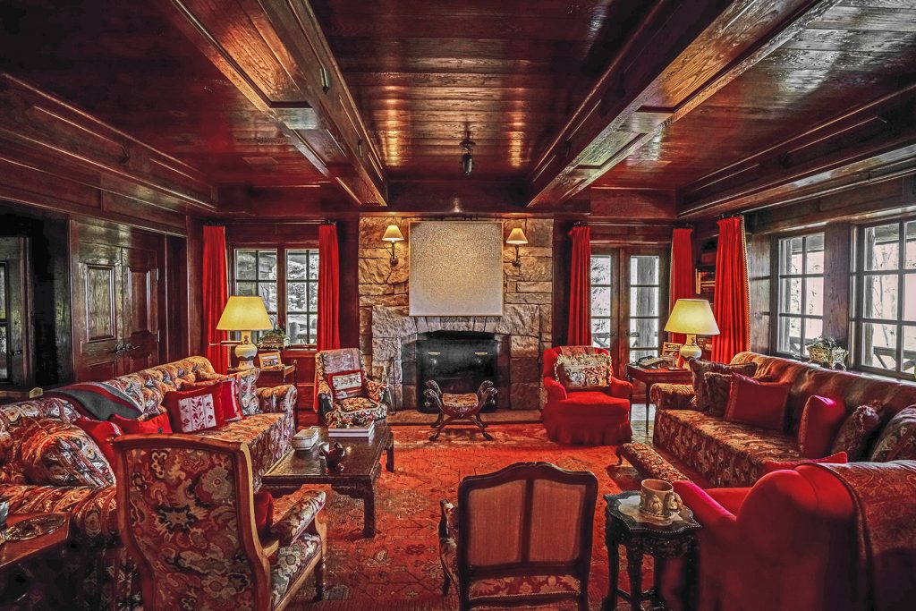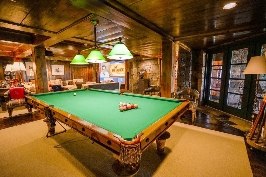 This faithful stewardship of the land also extends to the indoor atmosphere. Listing agent Brian Smith of Hall and Hall says that the sale price includes most of the property’s furniture, some of which was made on site by French craftsmen. The architecture features bent log rafters, large fireplaces (some of the mantels were imported from European castles), and no shortage of space with five bedrooms (including the master suite), a library, wine cellar, game room, theater, indoor hot tub, sauna, steam rooms, and wet bar.