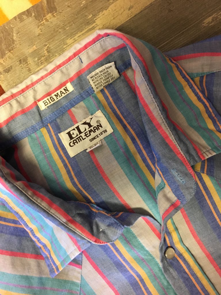 How did this “Big Man” cotton-blend pearl-snap wind its way into my husband’s starched and city-made wardrobe in the first place? I knew the general story, but decided to go straight to my sources for some historic perspective.