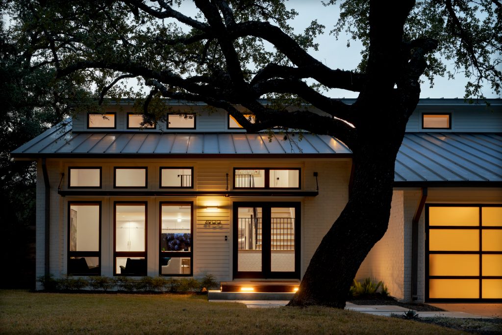That’s why we love hearing about city remodels that don’t tear down ranch-styles homes, but freshen ’em up. In Austin, where mid-century modern blends effortlessly with ranch-style, we found one such renovation that embraced the beloved architectural style. Although this home does have two stories, it checked off too many other classic ranch-style prerequisites (sliding glass patio doors, vaulted ceilings, large glass windows, mixed exterior materials) for us not to appreciate it.