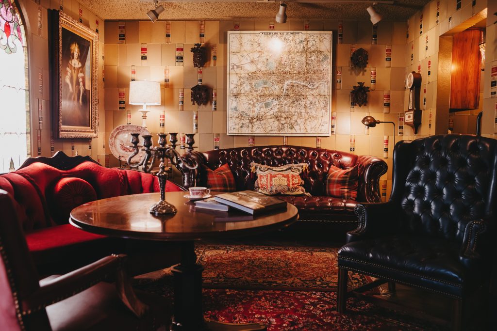 Browder’s love for discarded treasures is well-known throughout Abilene, where he has lived since his days studying art at Abilene Christian University in the 1970s. Community members have even taken to bequeathing him items to use in his projects. “People leave chandeliers and punch bowls on my front porch,” Browder says. “I don’t even know where they all come from.” The innkeeper’s biggest windfall came courtesy of a 100-year-old local law firm that gifted him its entire law library. It ended up being 3,000 books in all, and it took Browder a week to haul them out of the law office. The covers of the books now line every wall of his newest property, a Downton Abbey-themed house whose tufted furnishings and gilt-framed paintings call to mind an old English library.