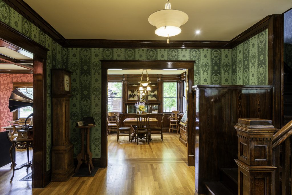 Horton admits there are not many photos of the Russells’ home life, but meticulous researchers did track down and re-create the home’s original red-flowered wallpaper. And you can still see marks where curtains hung to block off a downstairs living room, a corner of which served as Russell’s studio from 1900 until the cabin studio was built in 1903. The room included an outside door through which “The Bunch” could slip in for a visit without disturbing Nancy.