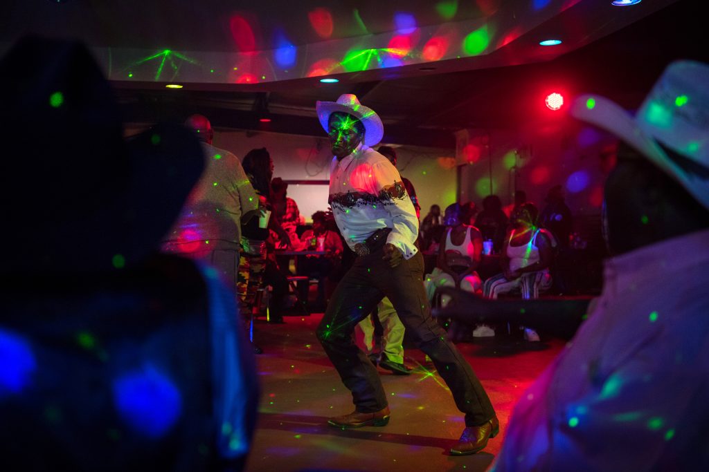 Why isn’t that more well-known and more widely represented? Doyle doesn’t seek to answer those questions so much as just capture the compelling proof of contemporary black cowboy culture. What makes his Delta Hill Riders project unique is the tight bond Doyle was able to develop with his subjects. A startling intimacy is conveyed in each image, whether featuring a raucous dance at a local club or a cowboy father holding his newborn son on his first day home from the hospital.