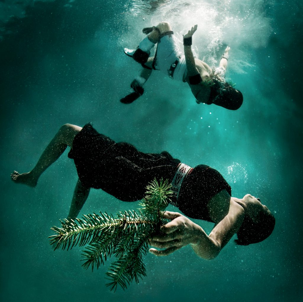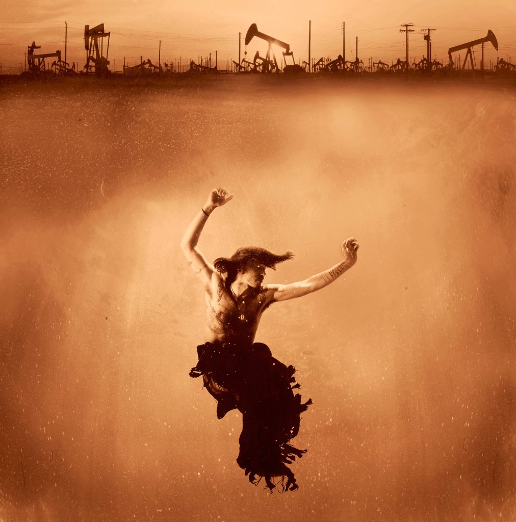 Titled Evolvers, the most arresting image depicted four young boys from Romero’s reservation sprinting through a Mojave Desert wash against a backdrop of giant wind turbines. Visually stunning on its surface, the image continued Romero’s focus on the way industry has impacted Native American lands. Her Water Memory features haunting images of Indigenous figures tumbling through water.
