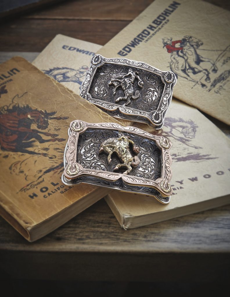 To celebrate 100 years in business, this year’s anniversary buckles will incorporate innovative 3D designs never before seen in the buckle industry, according to Marold. The pieces will also boast a special engraving of a vintage football-shaped Bohlin hallmark used from the 1930s through the 1950s in place of the current company hallmark. Marold anticipates they’ll produce about 800 special anniversary buckles this year. To him, time has flown toward this significant milestone.