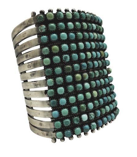 J. Alexander small stamped box with turquoise stone ($59), cowboysindians.com/shop, Tasha Polizzi Field Day vest ($320), montanarusticaccents.com, Christina Greene Milox turquoise earrings ($178), maverickwesternwear.com, Ten-row triple turquoise cuff ($5,063), sunwesthandmade.com, Shania serape and cowhide crossbody bag ($350), shopdancingcactusdesigns.com, Outlaw Soaps Home on the Range lotion ($15), cowboysindians.com/shop, Set of 3 handmade Pendleton wool cosmetic bags ($48), etsy.com/shop/timberlineltd