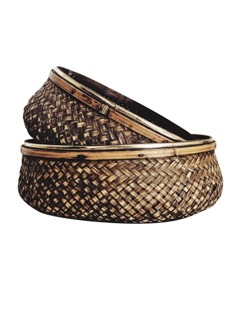 Vintage nesting baskets ($48), etsy.com/shop/urbanprairieco; Sun Face outdoor porch sconce ($295), customcutlighting.com; Ashley cowhide bar stool ($950), runyonsfinefurniture.com; Olive jar pottery vases (contact for price), thearrangement.com; Chewy by Susan Edison art print (contact for price), adobewesternart.com; Drum coffee table ($1,495), adobeinteriors.com; Navajo Crystal Ganado rug ($3,000), ciscosgallery.com