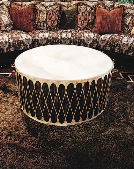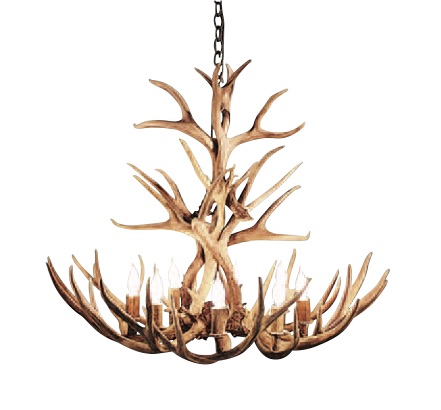 Elk horn napkin ring ($10), krsaddleshop.com; Mule deer antler chandelier ($2,351.80), antlerworx.com; Tiny feather ceramic dish ($13), burntthistleceramics.com; Jan Barboglio passion-flower decanter ($260), maverickwesternwear.com; Teak wood swirl console (contact for price), brumbaughs.com; Hand-painted barn owl silk pillow ($72), etsy.com/shop/sagehendesigns; Flat Out – Pronghorns by Michael Sieve art print ($145), wildwings.com
