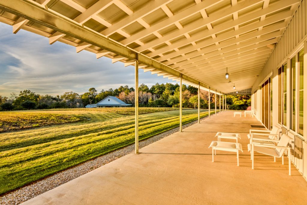 If arriving by helicopter is your preferred mode of entry, this is the ranch for you. Located in Whitehall, Texas, the 650-plus-acre ranch comes equipped with a helipad (in addition to plenty of on-ground transportation accommodations). Not far from Houston and just a stone’s throw from College Station, the home of Texas A&M University, the property is convenient enough to access yet situated privately amongst a forest of lush greenery.