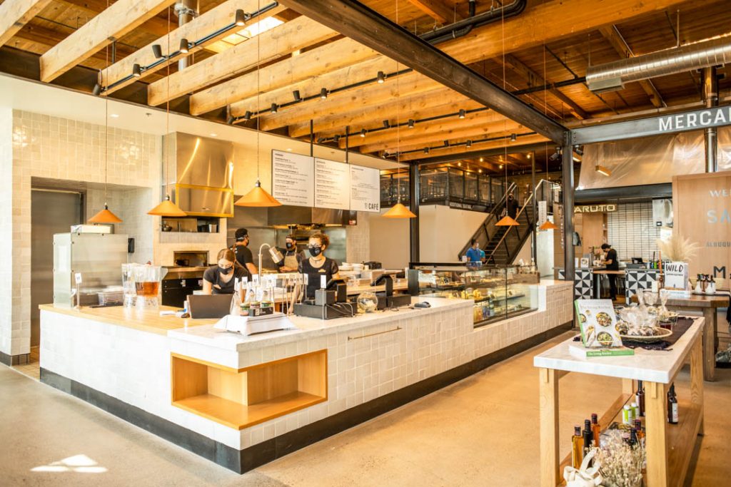 Sawmill Market is an artisanal food court and the café offers “locally sourced food with a seasonally driven menu, where quality ingredients are prepared simply and traditionally in our beautiful wood-burning oven.” It also features a market space featuring the wares of New Mexico farmers and other merchants.