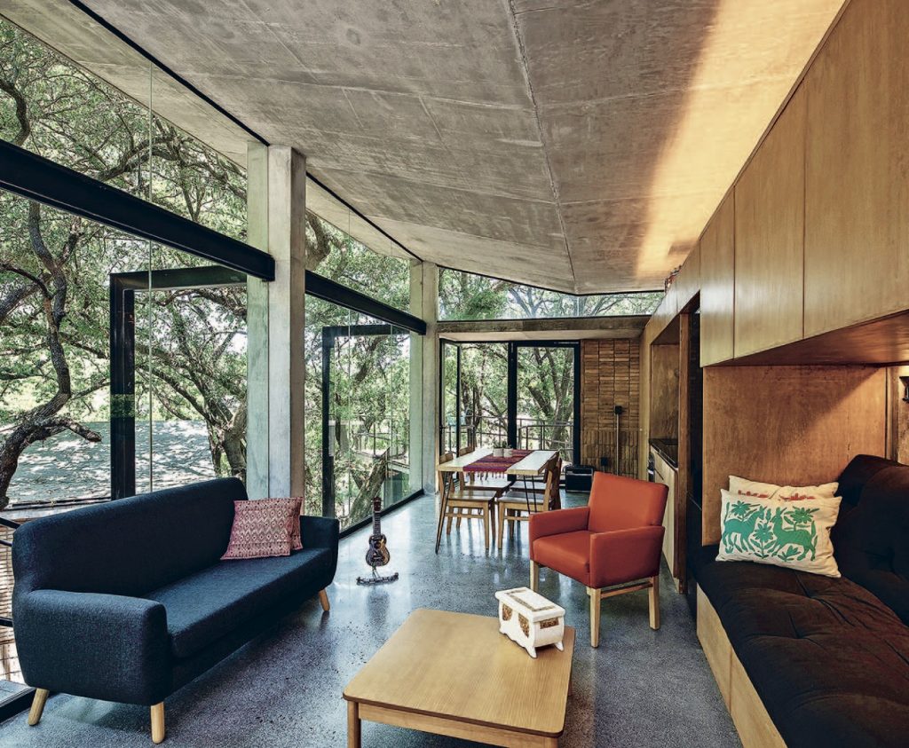 Now the design pros have put their passion into book form, with the release of Escapology: Modern Cabins, Cottages, and Retreats. The 256-page tome is equal parts inspiring and informative, featuring an eclectic selection of 24 escapes spanning nine countries. In addition to striking images of enviable getaways, including a sprawling mountain lodge in Montana, a tiny treehouse in Ontario, and a contemporary cabin in South Africa, the book offers expert tips on everything from going off the grid to choosing appropriately durable furnishings. “Our dream was that readers could marvel at the homes but find heaps of takeaway information, too,” McAllister says. While the featured houses are wonderfully diverse — in size, style, location, and budget — they all have one thing in common: their respect for the surrounding landscape. As Colin and Justin write in Escapology, when it comes to complementing a home’s natural setting, “It’s all about fitting in and not taking over.”