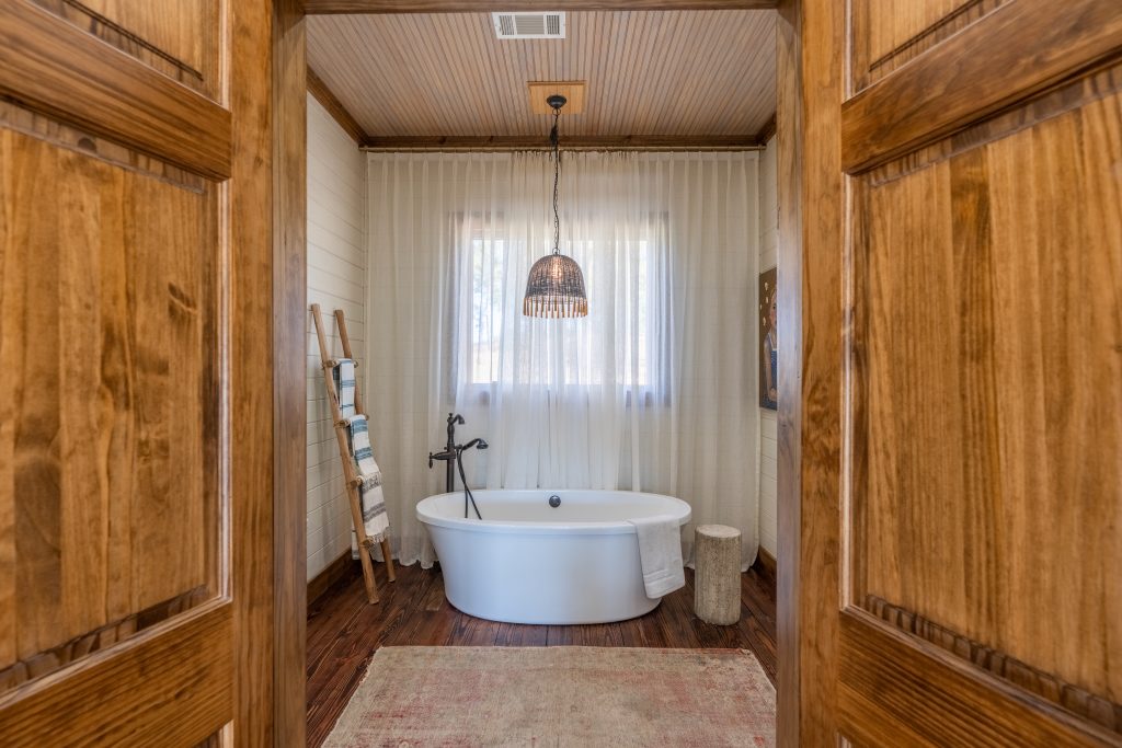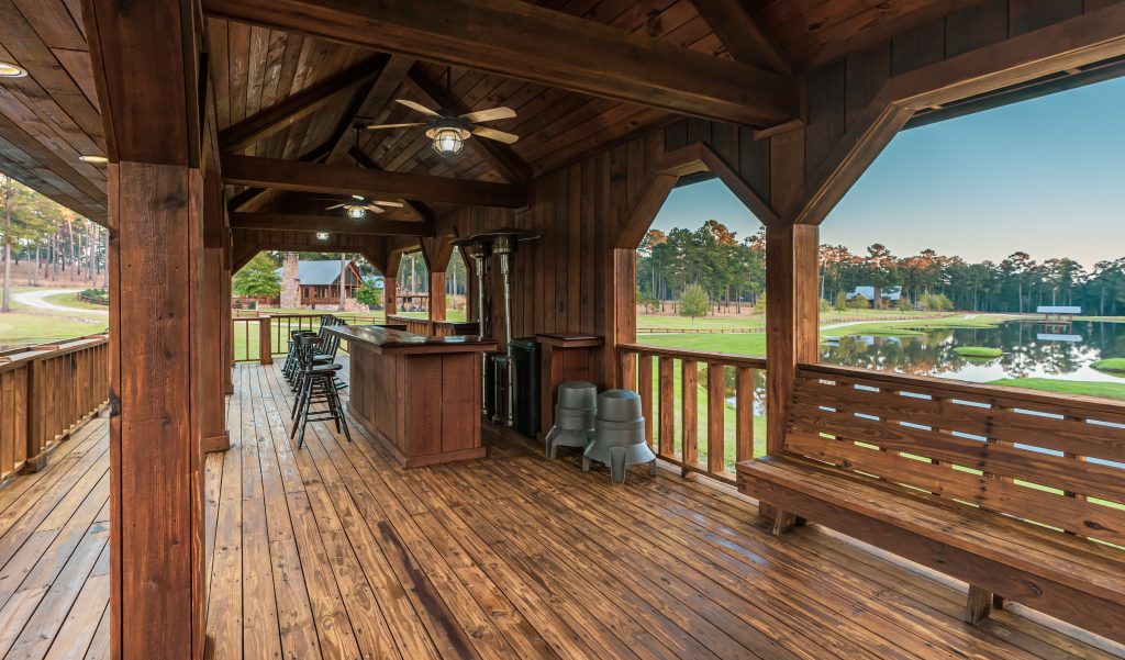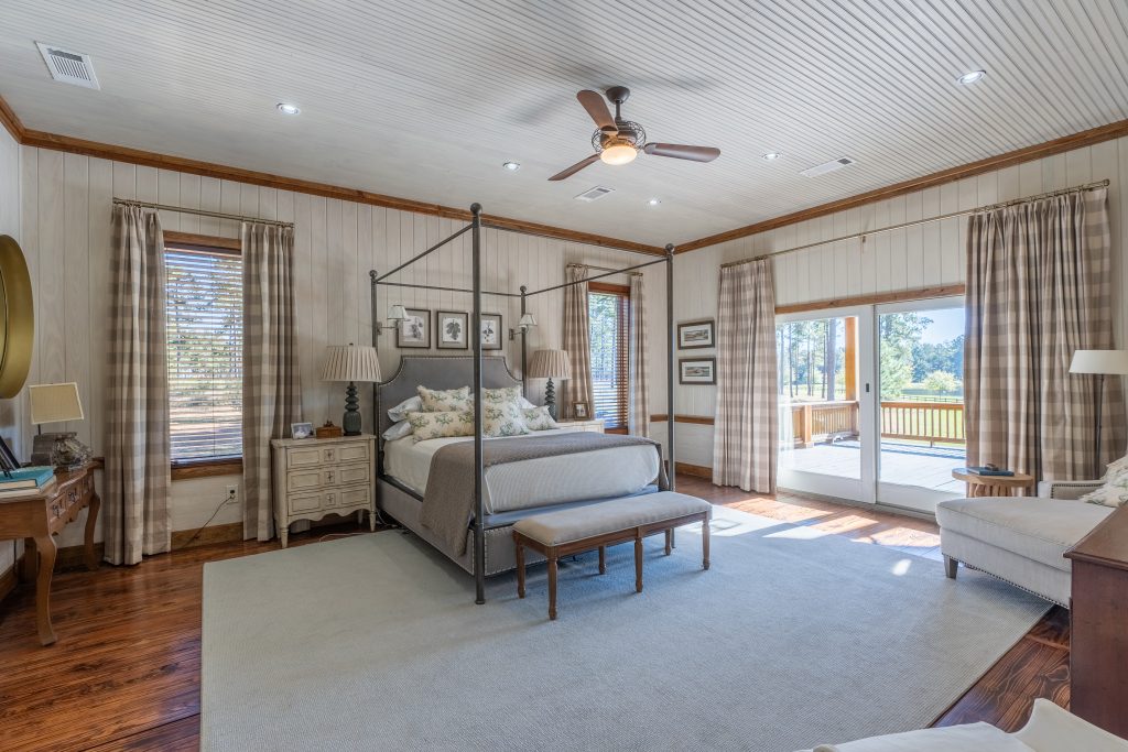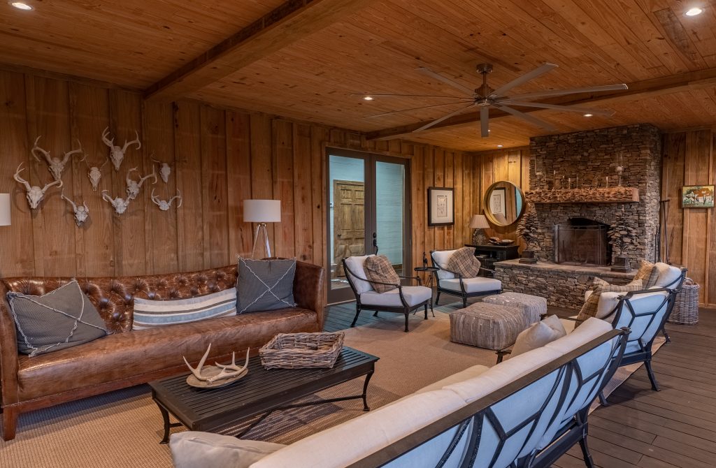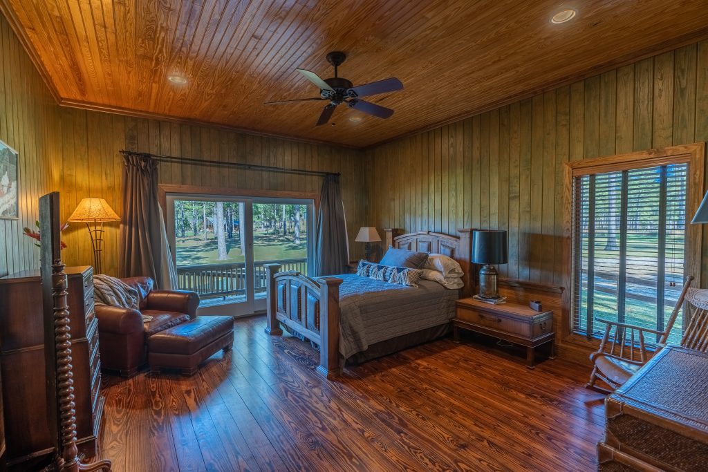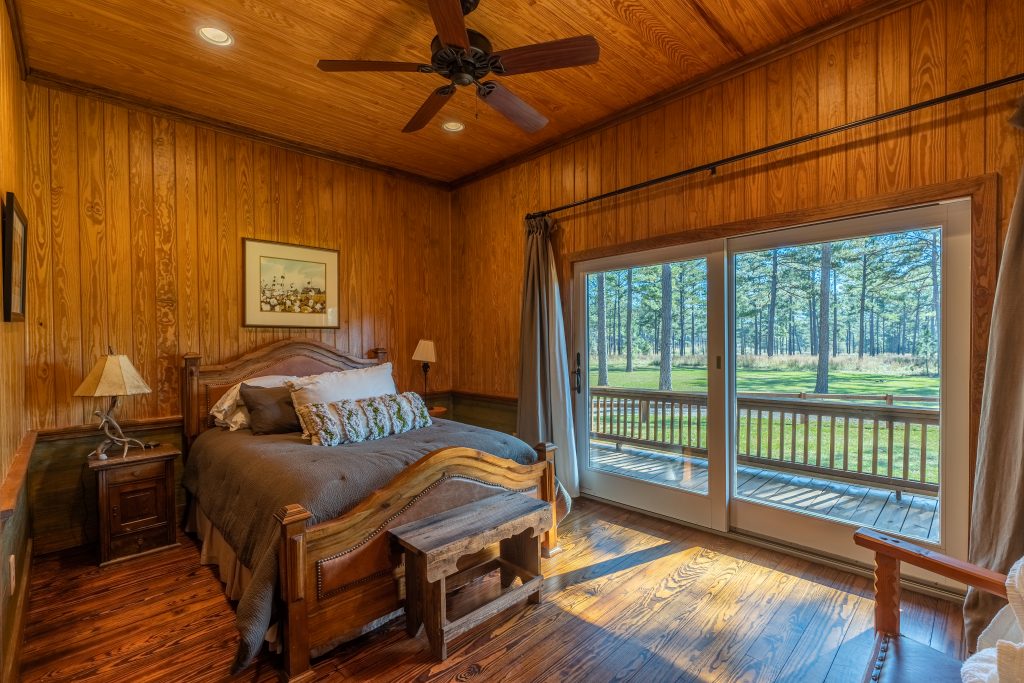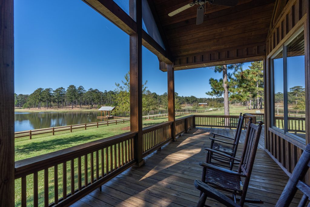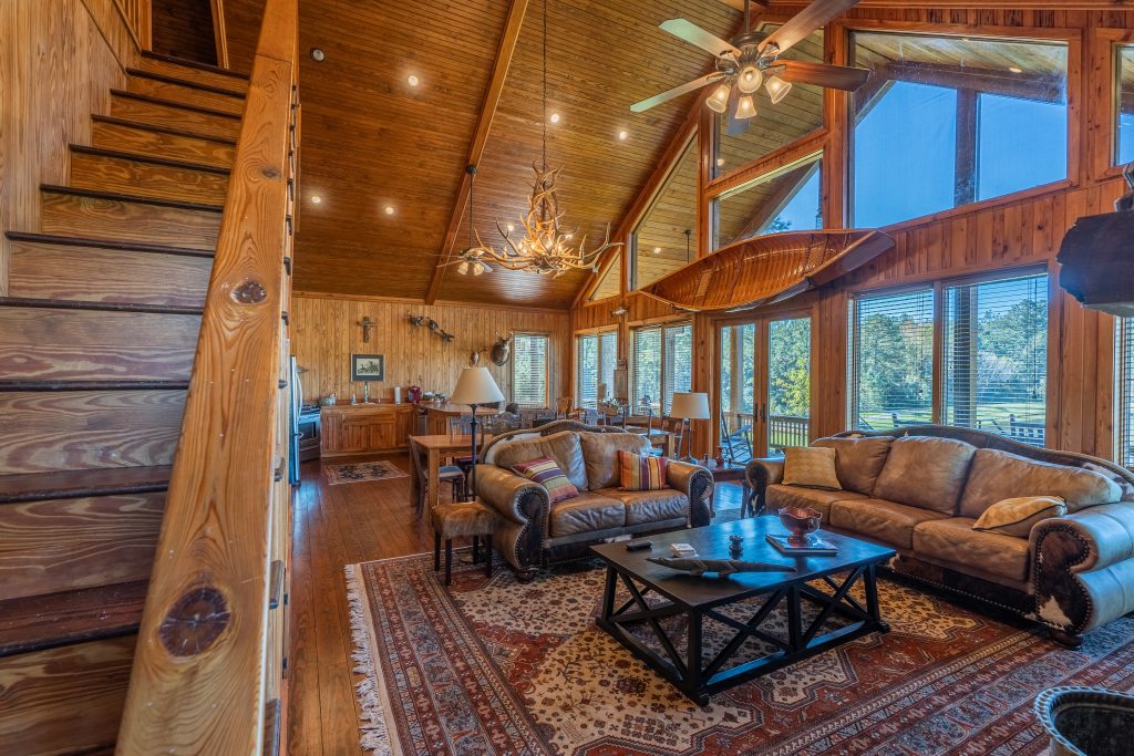 Both the main lodge and guest lodge were custom-built in the last 15 years from pine and cypress with vaulted ceilings, abundant natural light, floor-to-ceiling windows, wood-burning fireplaces, and wraparound porches.