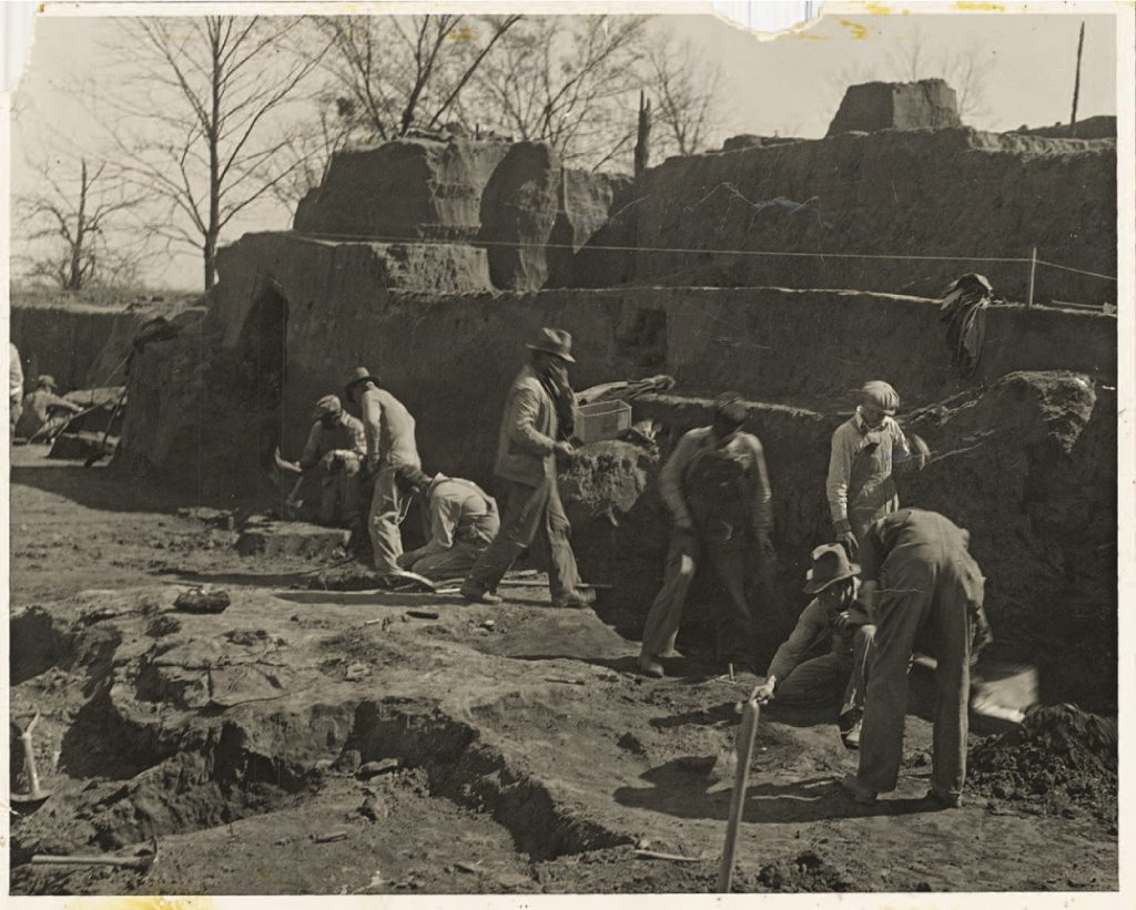 To stop the destruction, in 1935 Oklahoma became one of the first states in the nation to pass laws forbidding looting, but because of its remote location, the theft continued. Finally, in 1936, the University of Oklahoma — with help from the Oklahoma Historical Society, the University of Tulsa, and private donors — arranged for scientific excavation of what remained of the burial mound to protect what was left.