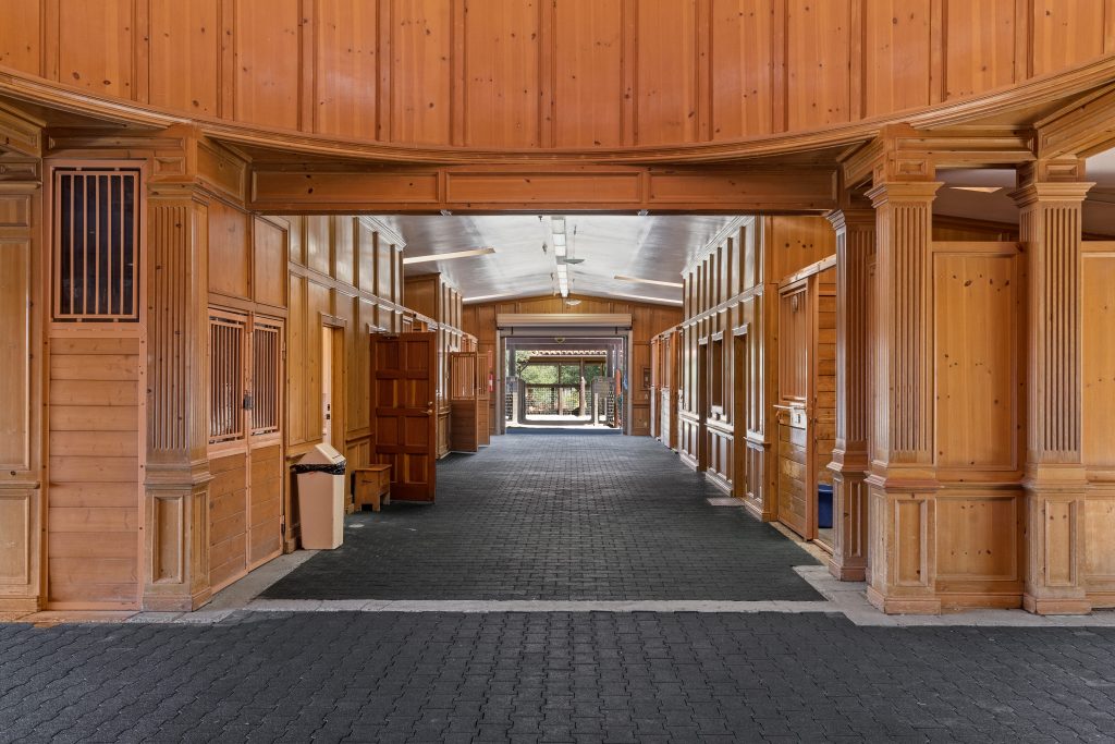 According to Pacific Sotheby's International Realty, “the 170-acre property features a 38-stall stable, training track, paddocks, an 8-stall stallion barn and much more – everything needed to raise, train and breed thoroughbreds. Amenities for owners and guests are just as exceptional – a stunning stone-faced main house with pool, fireplaces, and expansive manicured lawns is ideally located on the property and near the well-appointed guest casita. For wine connoisseurs, the farm is home to 28 acres of producing vineyards with additional acreage available.”