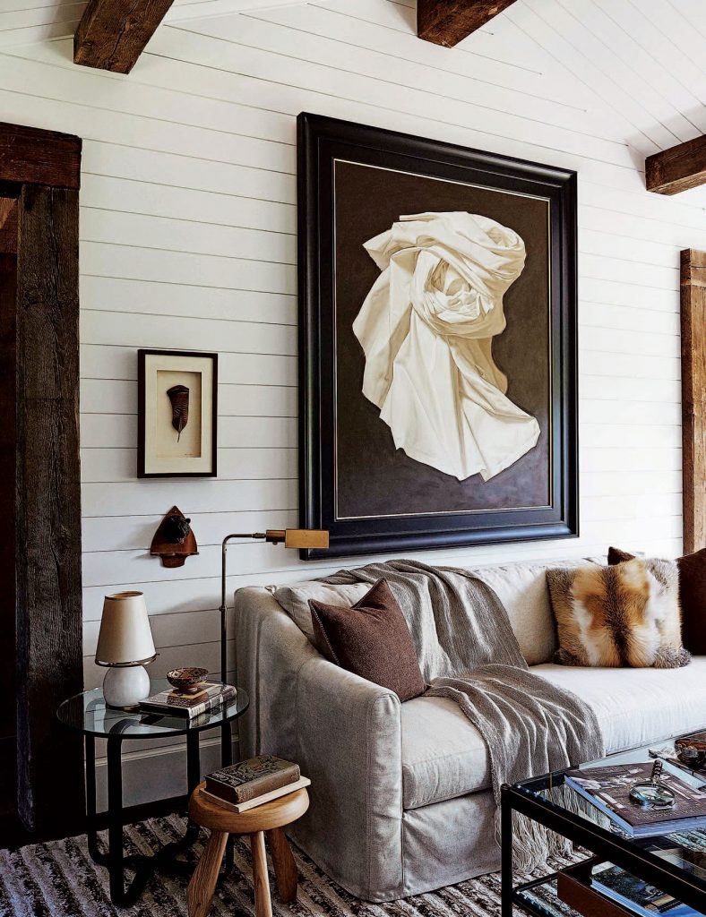 I have to plug the Indigenous artists I represent in Stapleton Gallery, which I started a few years ago as a sister business to our design firm. Ben Pease is a young artist whose potential cannot be overstated. He will be one of the greats—much like another one of our artists, Kevin Red Star. Kevin might be the most important living Native artist of his generation. We also love the work of Judd Thompson, who is not afraid of color, and his work is kind of blowing up right now. Photography belongs in every home and doesn’t get the same attention as paintings in the West, so I try to incorporate black-and-white photos into every space. Audrey Hall is the best working in Montana at the moment.