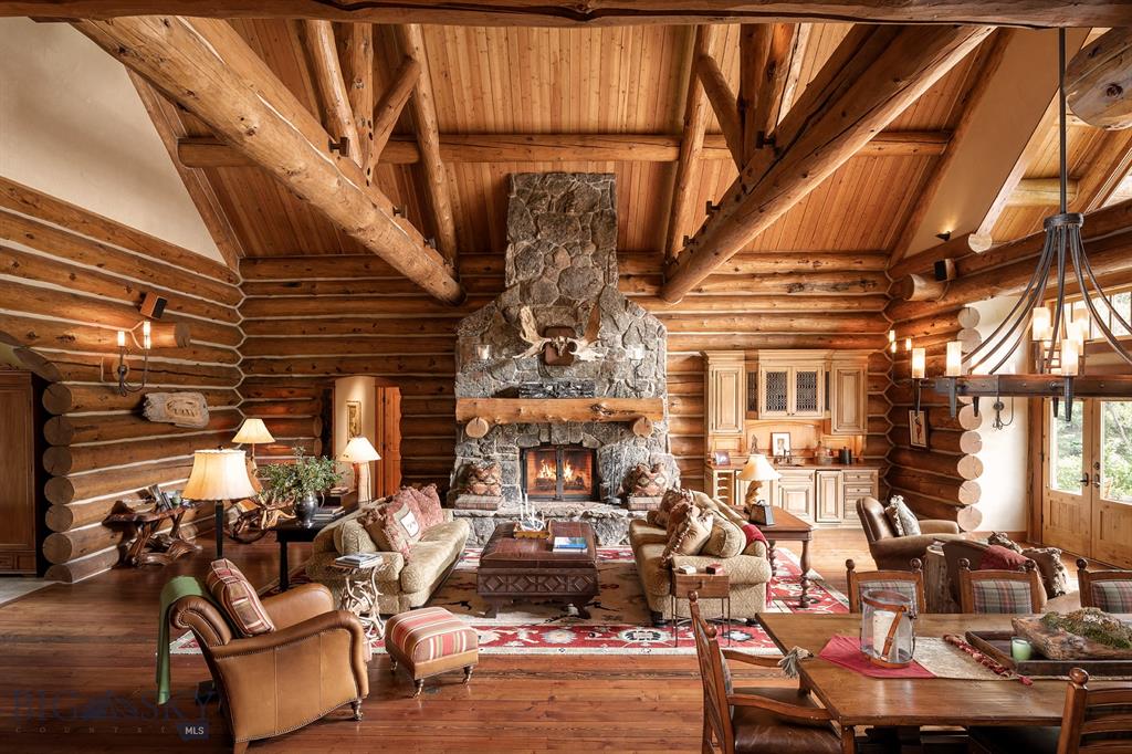 The Gallatin River log home in Big Sky, Montana, comes with multiple parcels and a private membership.