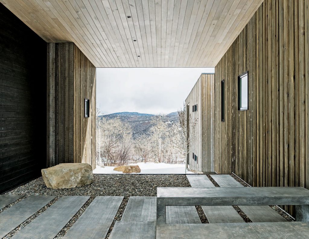 In other projects, the connection is more ethereal. In the book’s Gammel Damm residence, a modern mountain retreat nestled among 120-foot-tall spruce trees and inspired by the client’s family cabin in Norway, the house follows the gentle slope of the topography, with a singular roof that parallels the natural grade of the land. Beyond that, the architects also made the house itself a connector. “The site was really unique in that it was a combination of this subalpine environment and this high alpine desert, and the house really became a threshold across the two ecosystems,” says Kennedy. “So on one side of the house, to the south, the ecosystem is one thing, and to the north, it is a completely different thing, and the house is what brings those two environments together.” At first glance, it isn’t immediately obvious that there are scrub oaks and sagebrush on one side of the structure, while spruce trees and aspen trees populate the other side. “It’s subtle, but it’s really powerful,” Cottle adds.