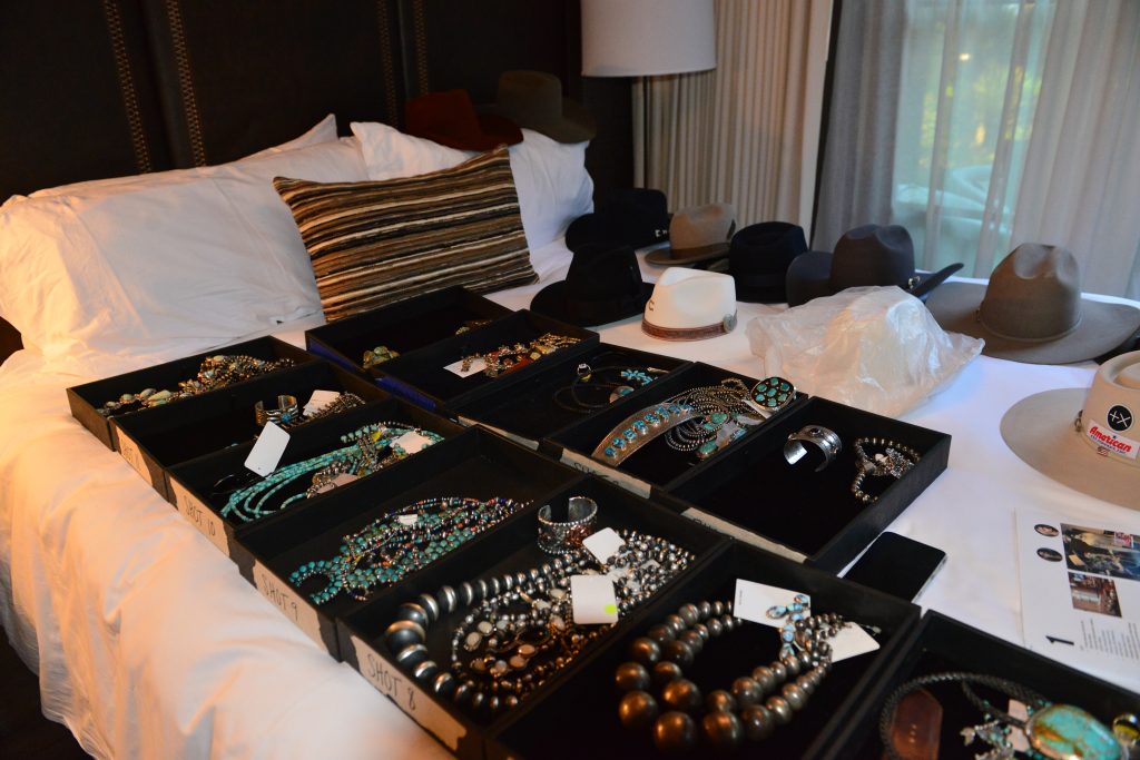 The hotel provided us two rooms to set up shop — one for makeup and hair and the other as a changing room. Each room was designed with as much thought as the hotel's main areas — with custom boot jacks, framed belt buckles, and a copy of C&I on every side table.