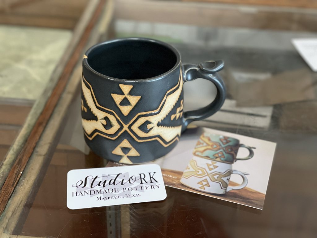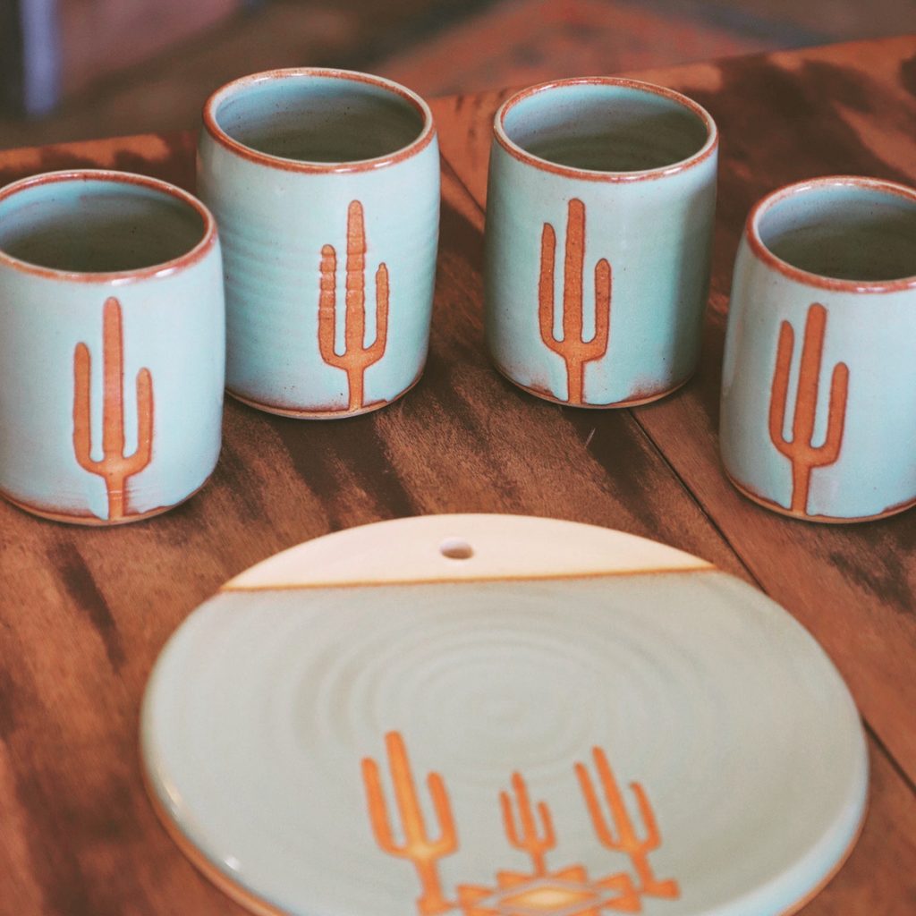 Rachel Sherrill of Studio RK relies on intuition to make her handmade pottery. Her mugs sport designs that are reminiscent of the West and Southwest: saguaro cactus, the state of Texas, a silhouette of a horse and rider, your very own ranch brand among them. When she gets inspired in her studio in Maypearl, Texas, studio, she just goes with it. “Something special happens,” she says. “Not only do your creative juices start flowing at turbo speed, but your confidence skyrockets, and all of a sudden there’s not anything you can’t do."