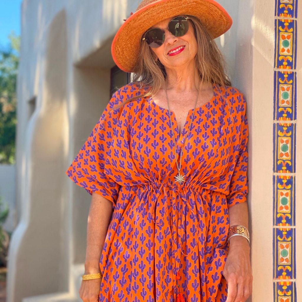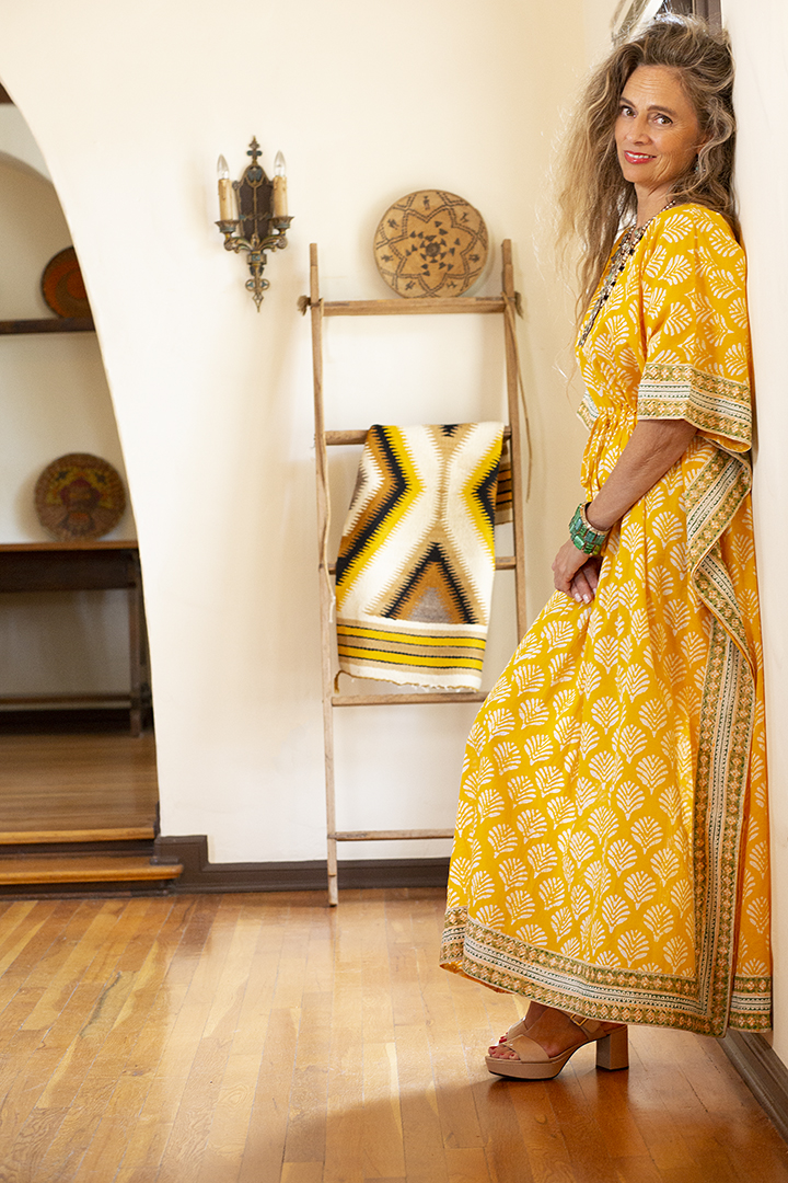 Jean Marie Clarke, founder of Pax Philomena, is on a mission to share her life-long love and passion for beautiful textiles through this transnational clothing line. A quintessential citizen of the world, Jean Marie was born in Calcutta, India to Anglo-Indian parents whose families had been living in India for five generations. She emigrated to America at a young age as a British citizen and was raised in Phoenix, Arizona where the Pax Philomena atelier is located in her historic 1927 adobe house, which was featured in Phoenix Home & Garden.