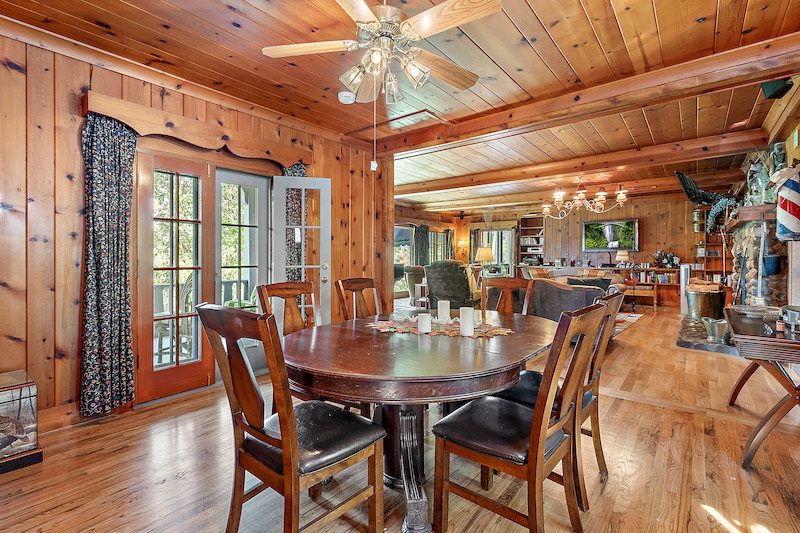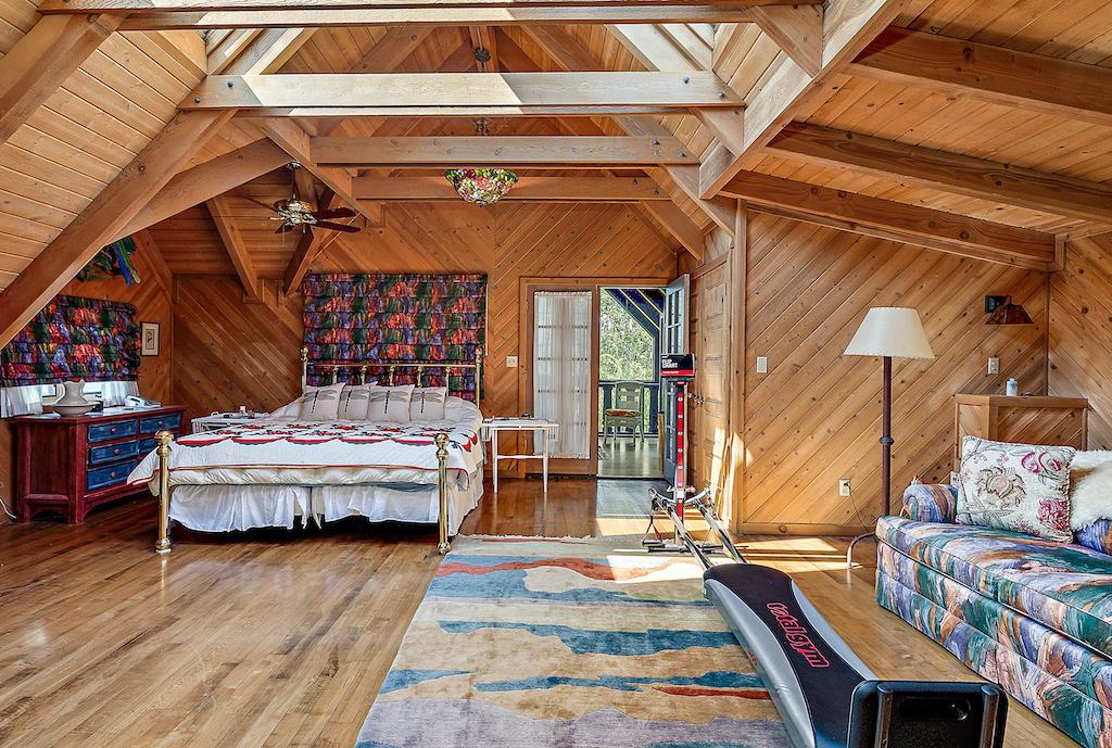 The property sits along two miles of the Rogue River, offering unique privacy and security. It includes 14 parcels and seven homes, some of which provide rental income, but it’s the lodge-style primary residence that reflects a cozy home life and the Duffys’ appreciation for art and nature.