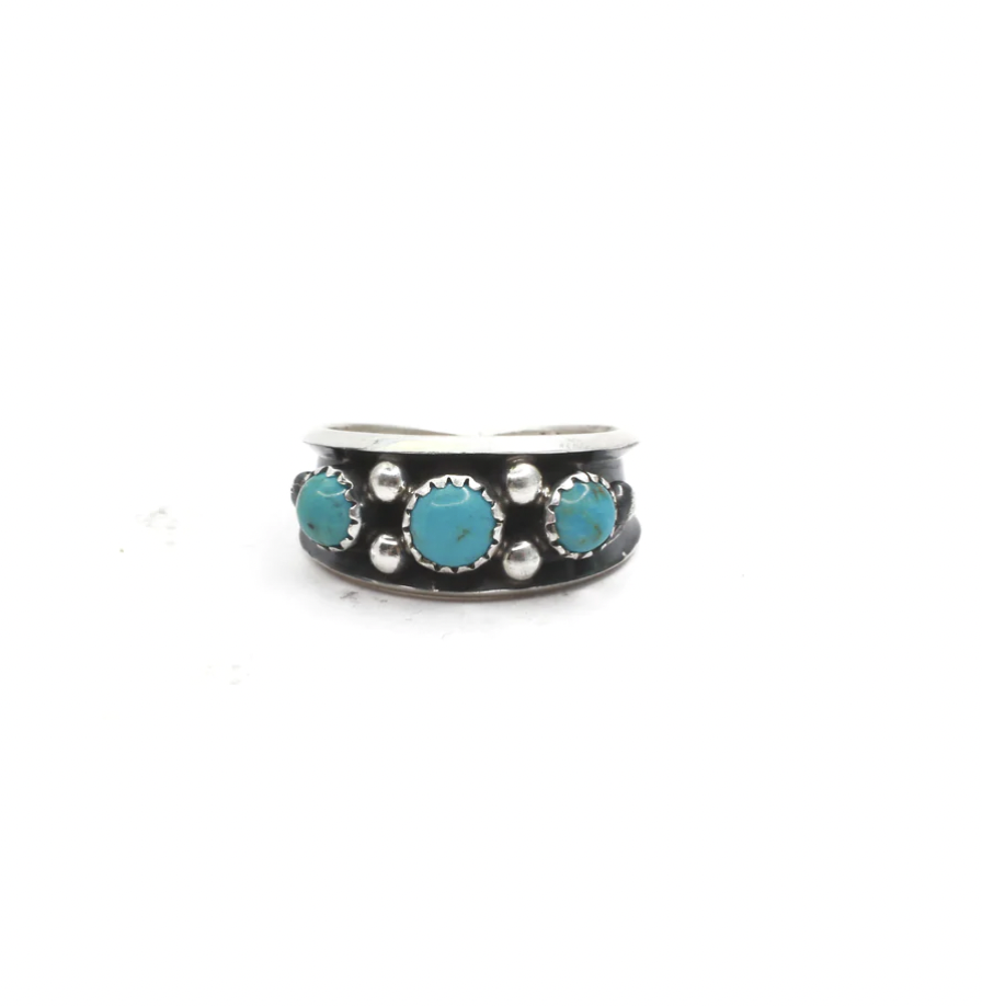 Rings: The Vaquero Ring ($312), hippiecowgirlcouture.com; Randy Christensen Villagrove Turquoise Ring ($240), lanterndancer.com; The Piper ($100), turquoiseandco.com; The Medora Turquoise Statement ring ($649), callicosilver.com