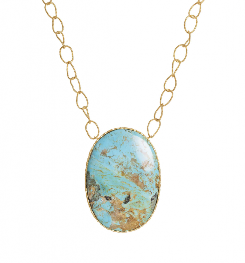 Necklaces: Rayne custom necklace ($90), kendrascott.com; Pendant Turquoise Necklace ($663), christina-greene.com
