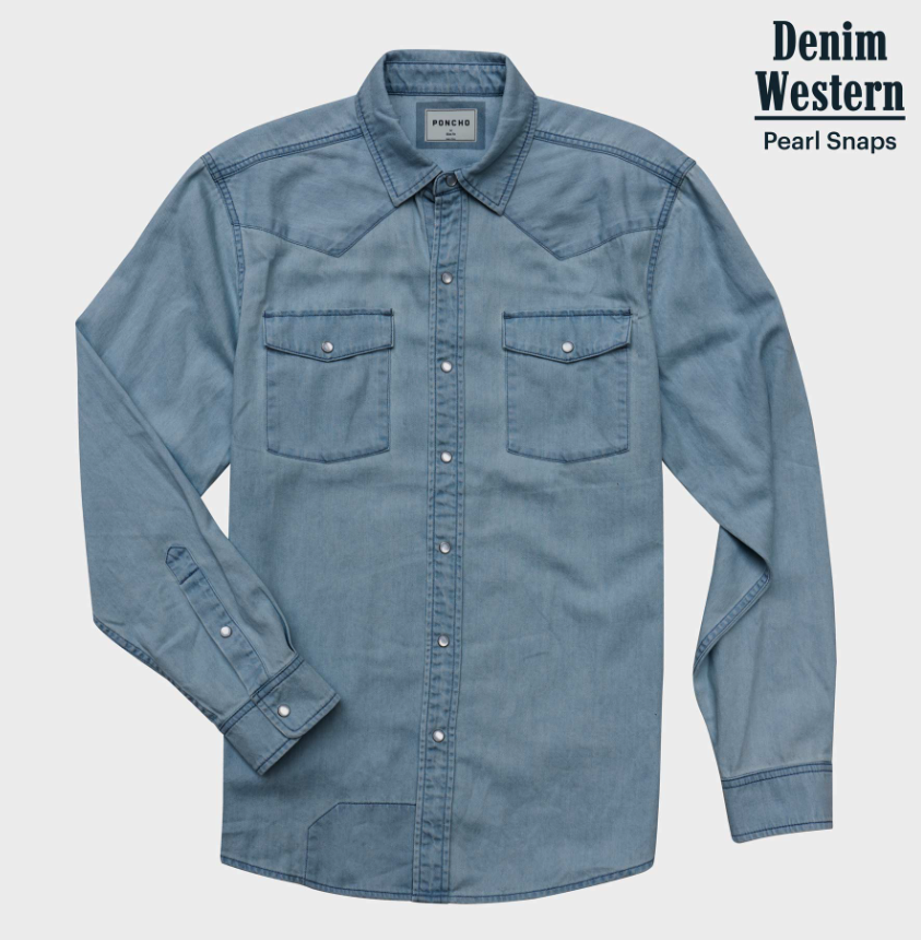 The Fort Davis medium wash shirt ($89.95), ponchooutdors.com; Classic Western Standard Fit shirt ($69.50), levi.com; Indigo Denim Shirt ($275), ralphlauren.com.