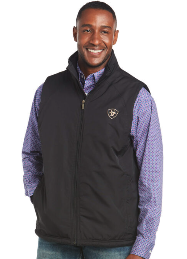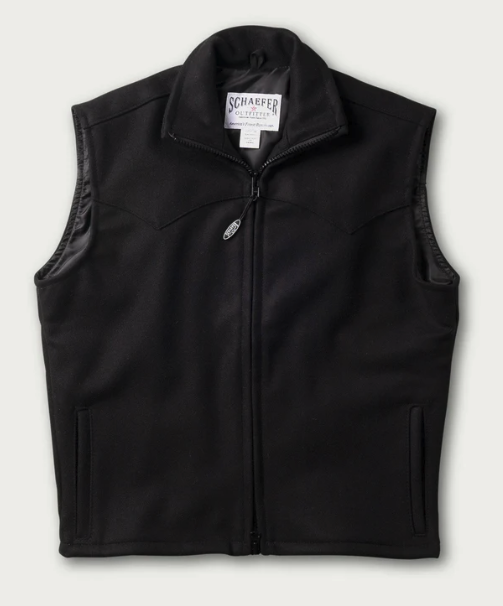 Team Logo Insulated vest ($109.95), ariat.com; Bucking Bronc Logo Vest ($96), cowboysindians.com/shop; Wool Arena Vest ($165), schaeferoutfitter.com.