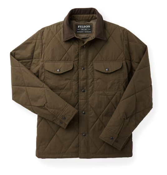 Men’s Oilskin Barn Jacket ($180), outbacktrading.com; Hyder Quilted Jac-Shirt ($250), filson.com; Barbour Shoveler Quilt ($198), orvis.com.