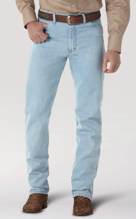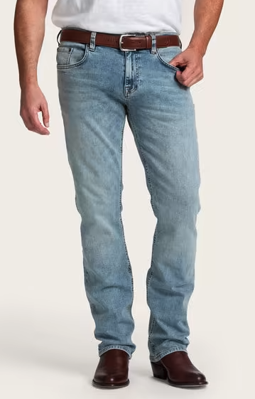 Men’s Slim Fit Ian Light Stonewash jeans ($59.99), cinchjeans.com; Cowboy Cut Original Fit Jeans ($49), wrangler.com; Slim Light Blue Jean ($95), tecovas.com.