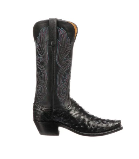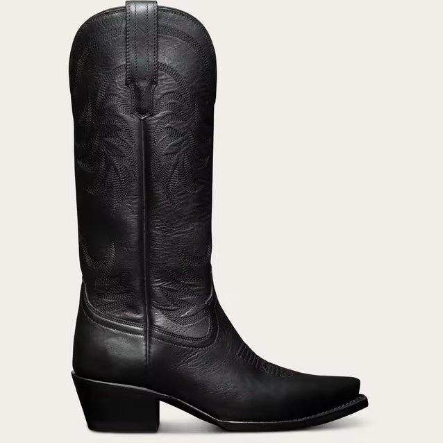 Boots: Dolly Black Ostrich boot ($795), lucchese.com; The Annie boots ($295), tecovas.com; Anderson Bean Black Deertan Roughout Cowgirl boot ($389.99), nrsworld.com.