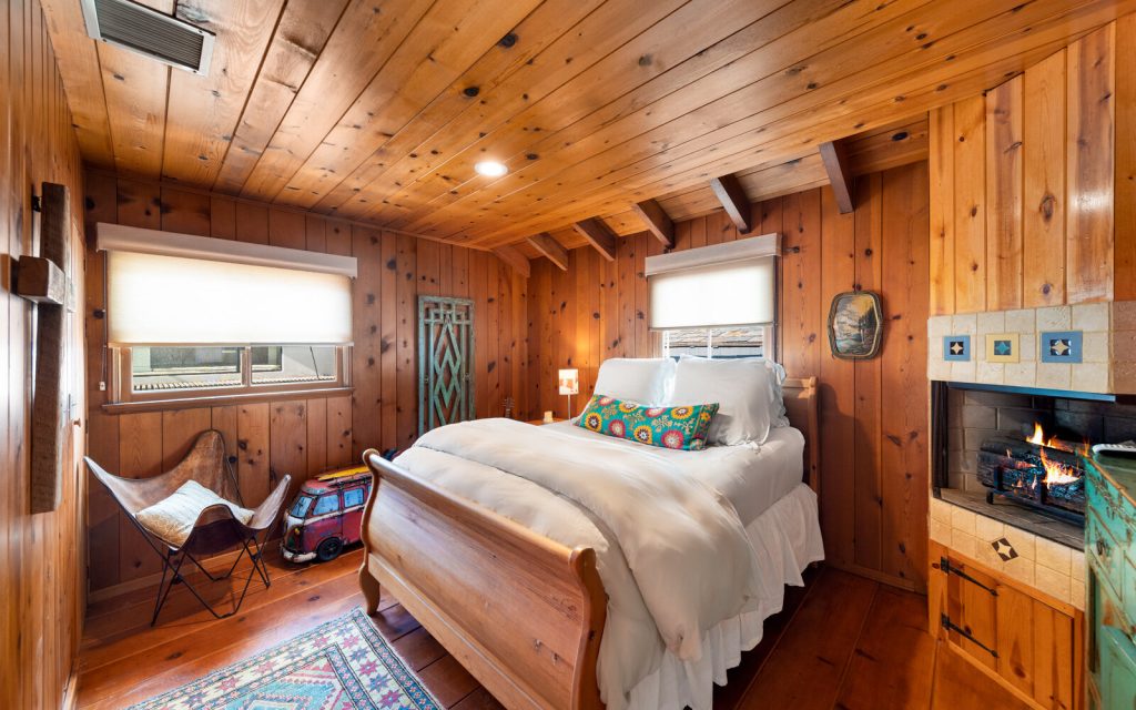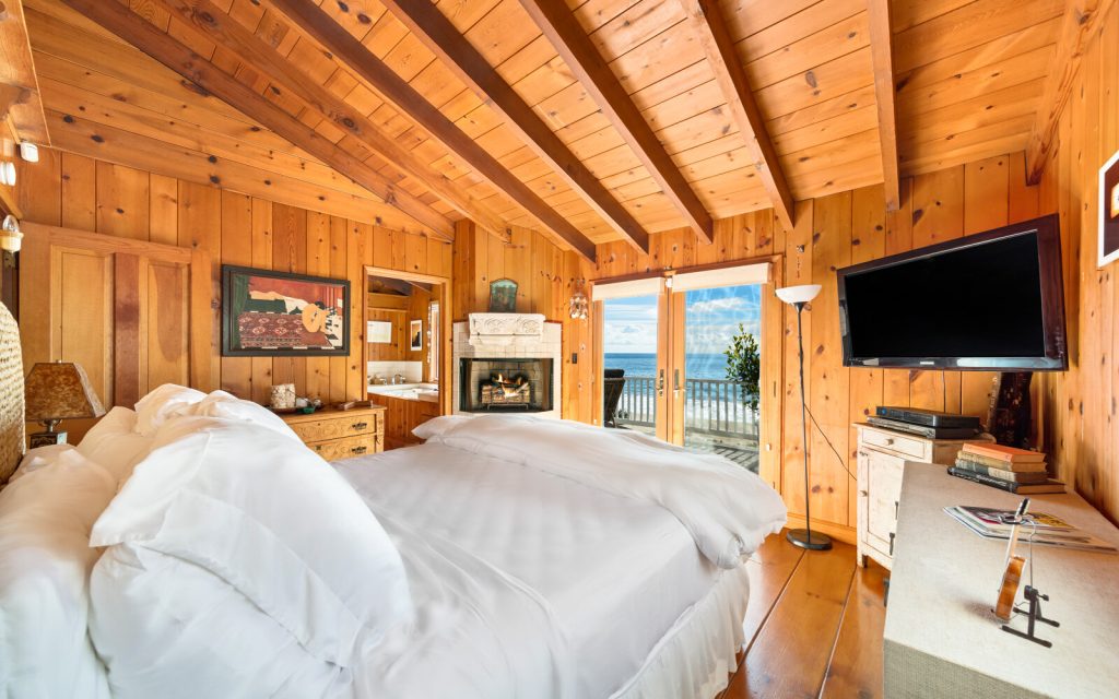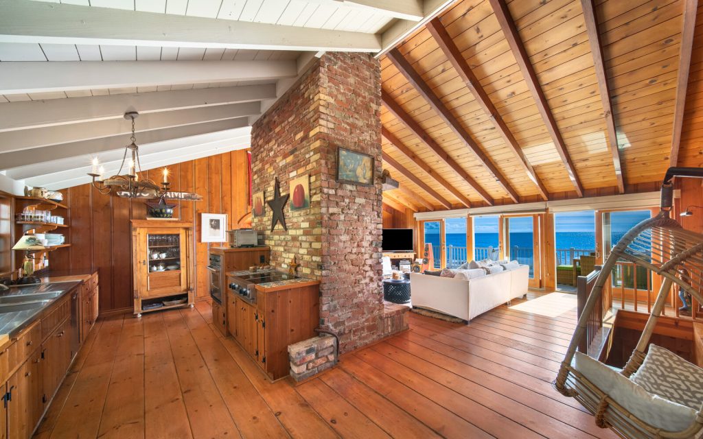 Besides the Pacific surf and Petty vibes, the property features a 2,200-square-foot main house that has retained its midcentury cozy-cabin style, with lots of wood paneling, high ceilings, and exposed rafter beams. A separate guesthouse was equipped as — what else? — a recording studio.