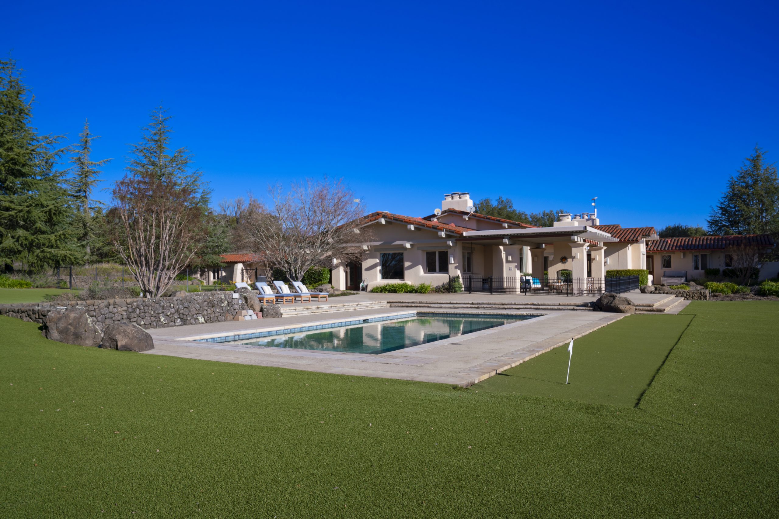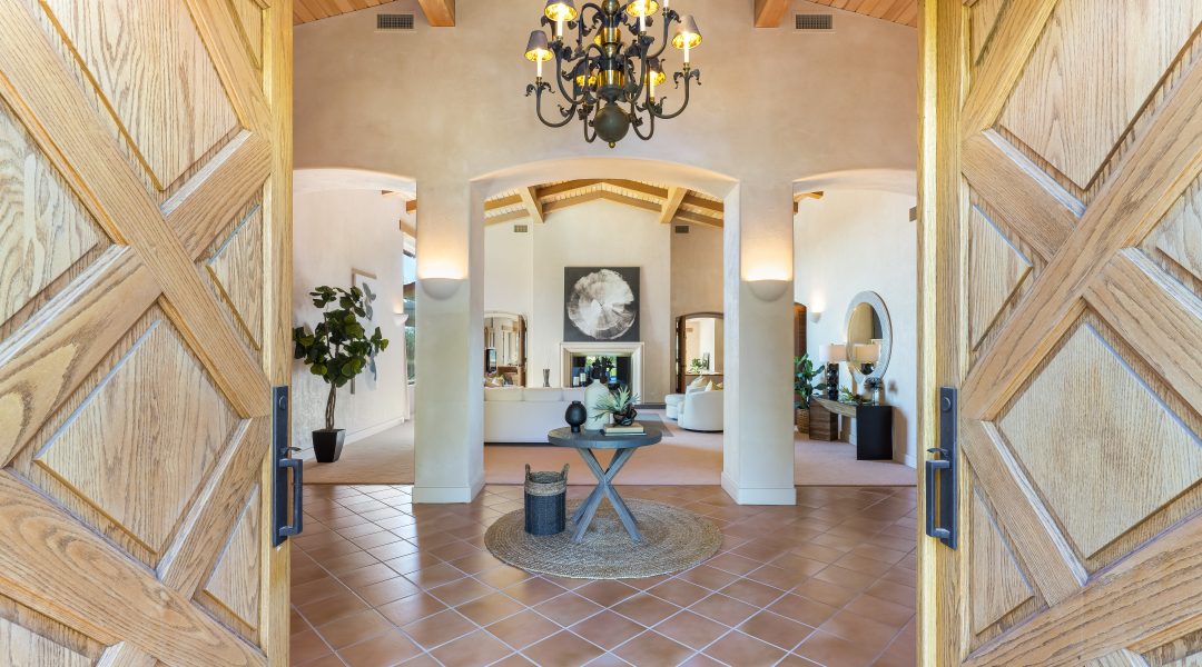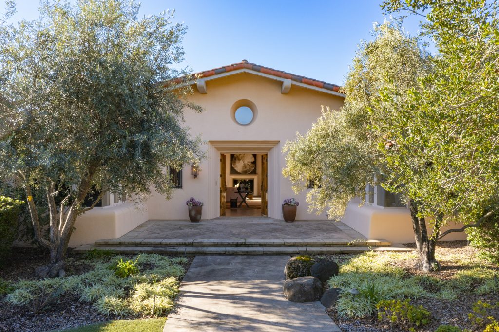 You’ll have the perfect spot to decide the future of the land—and take in the majestic views—from the stately office inside the airy 6,145-square-foot, three-bedroom, four-bathroom Montecito-style residence.