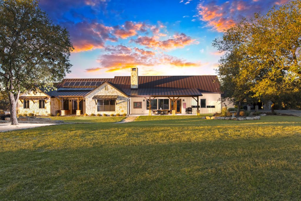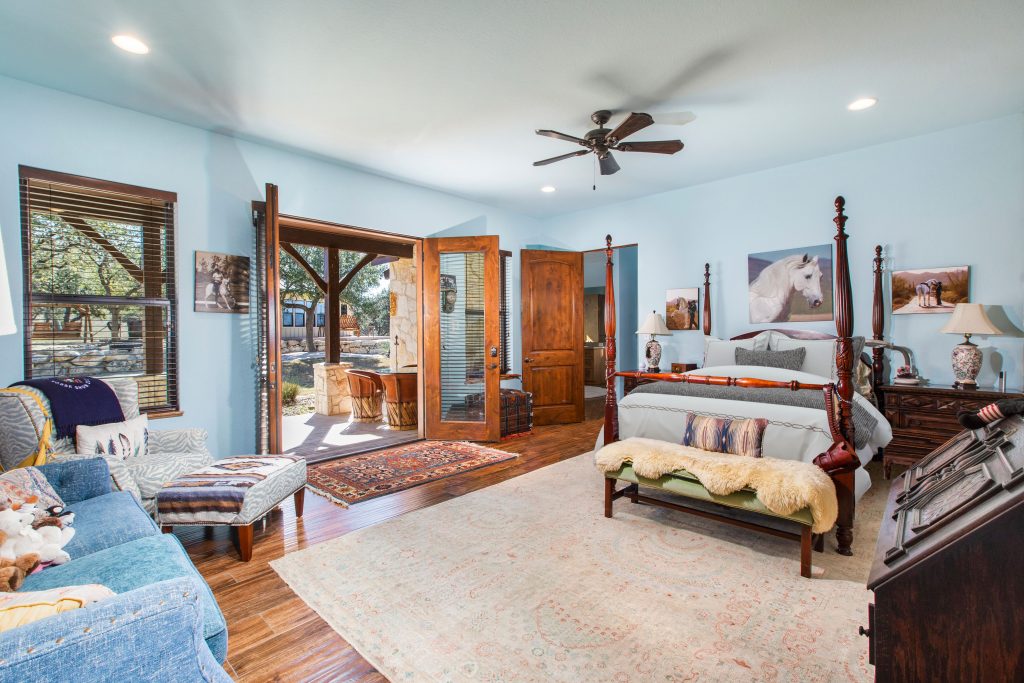 And it’s allergy-mitigated: Sneezers will whoop because the 600 acres of pristine land have been fully cleared of cedar trees. Inside the circa-2017, 4,541-square-foot residence, everyone will applaud the 12-foot-high ceilings, wood beams, stone fireplaces, and dramatic arched doorways.