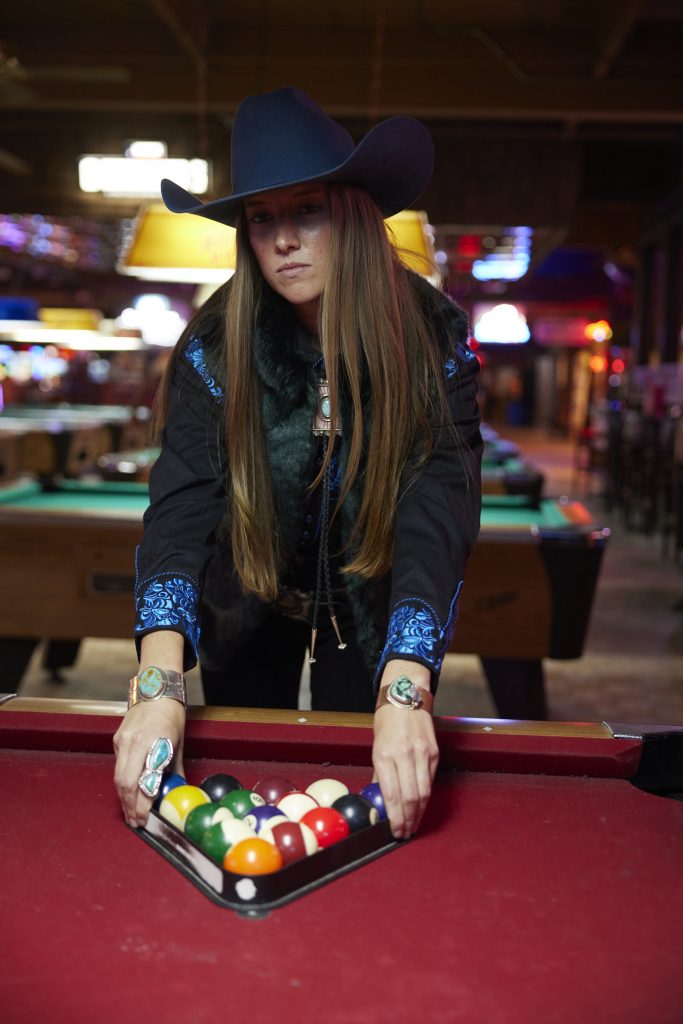 Resistol 30X hat (model's own); West in gold sunglasses ($89.95), americanbonfireco.com; 1601 sterling silver horseshoe bronc bolo ($3,240), clintorms.com; Dinner Jacket ($1,035), leddys.com; Black T-shirt (model's own).